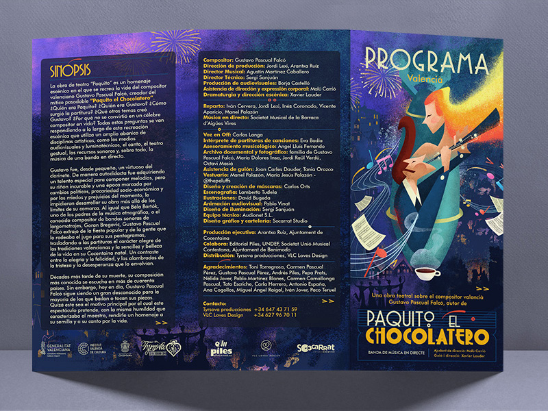 Socarrat Studio diseñó el cartel del evento y las pequeñas tarjetas que muestran el programa del espectáculo, con información sobre el sinopsis, dirección de producción, música y reparto, etc.